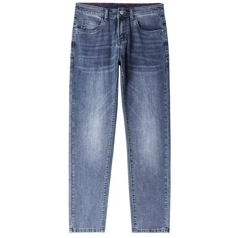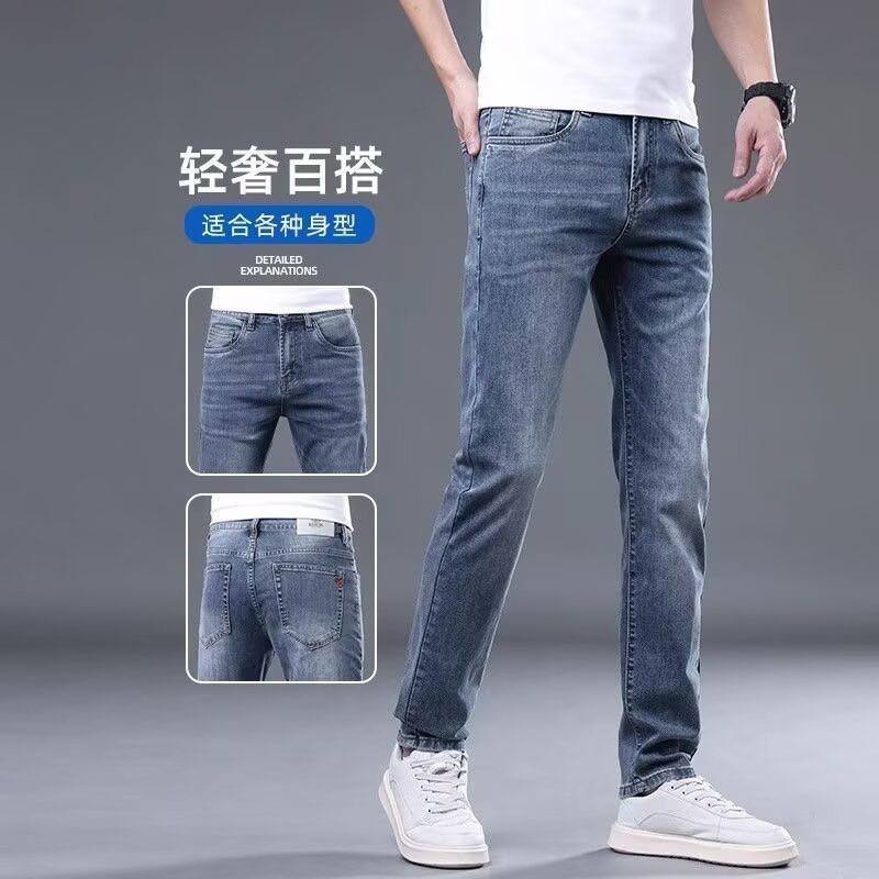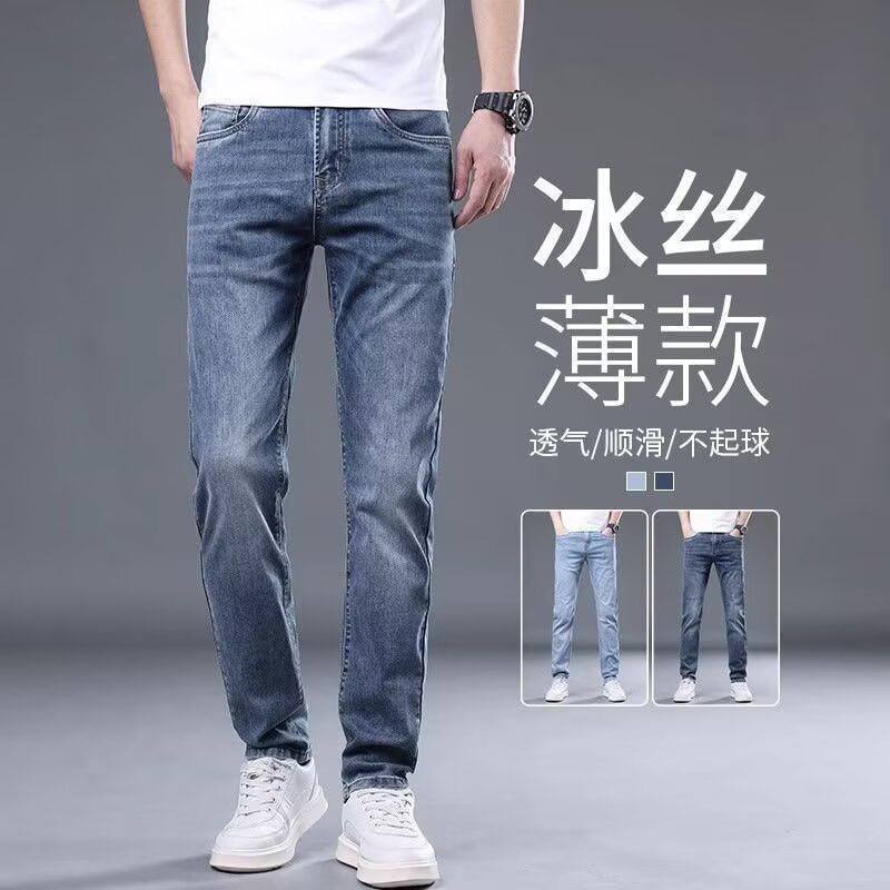 Эластичные джинсы для мужчин, летняя тонкая модель, прохлаждающий эффект (ледяной шелк), модный повседневный стиль, приталенный крой