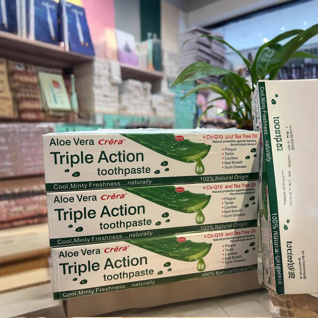Кристаллическая зубная паста с фруктовым вкусом. Осветляет эмаль, устраняет неприятный запах изо рта, защищает дёсны и снижает чувствительность зубов.