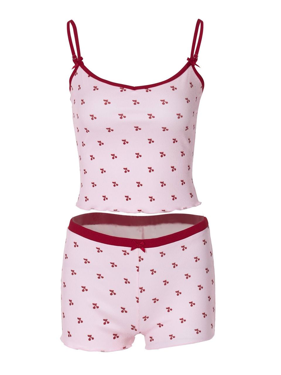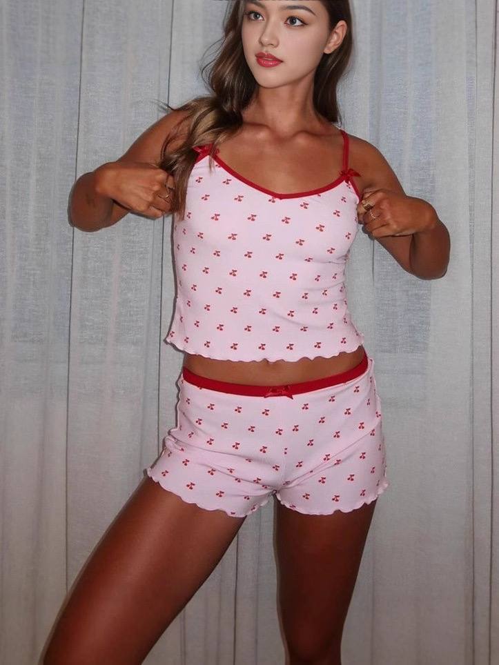 Легкий летний комплект с вишневым принтом для дома и отдыха.