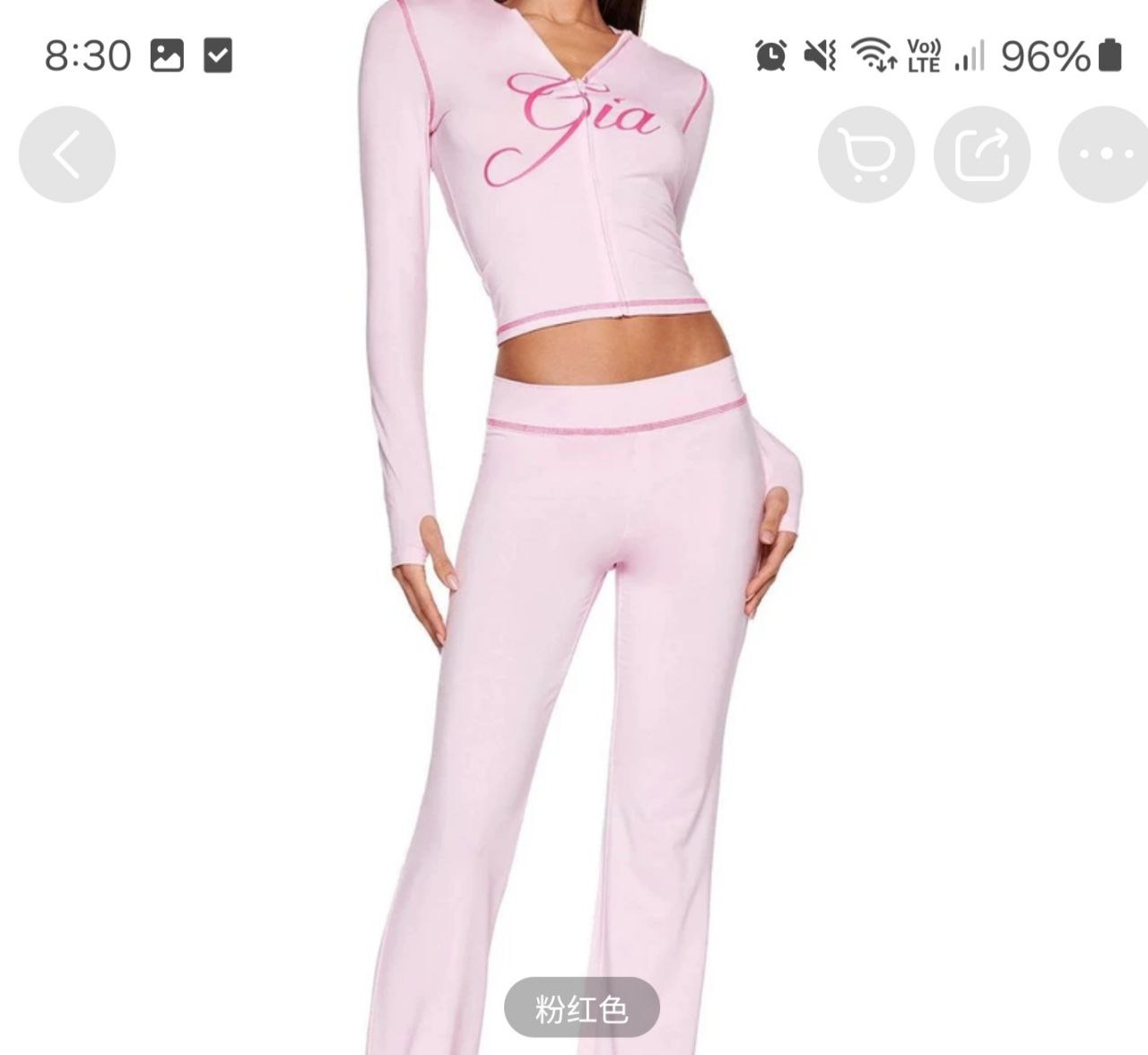 Удобный спортивный костюм розового цвета с модным принтом ‘Gia’. Включает мягкий свитшот и брюки. Отлично подойдет для бега, фитнеса или прогулок.