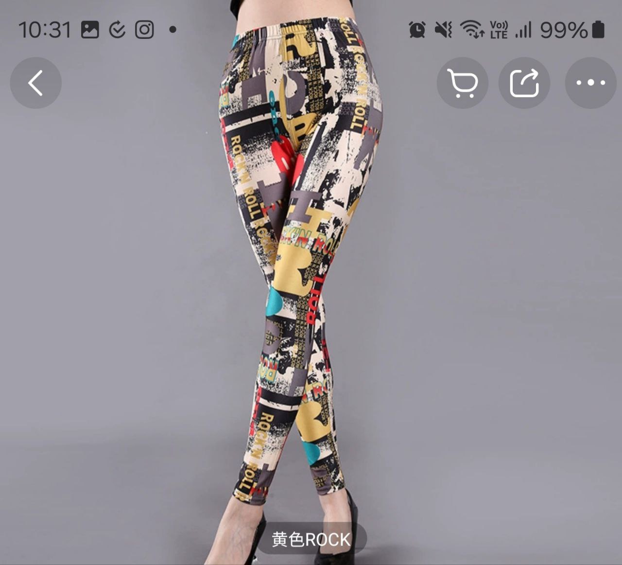 Женские леггинсы с ярким разноцветным принтом. Эластичный материал плотно облегает фигуру, не сковывая движения. Стильный элемент модного образа.