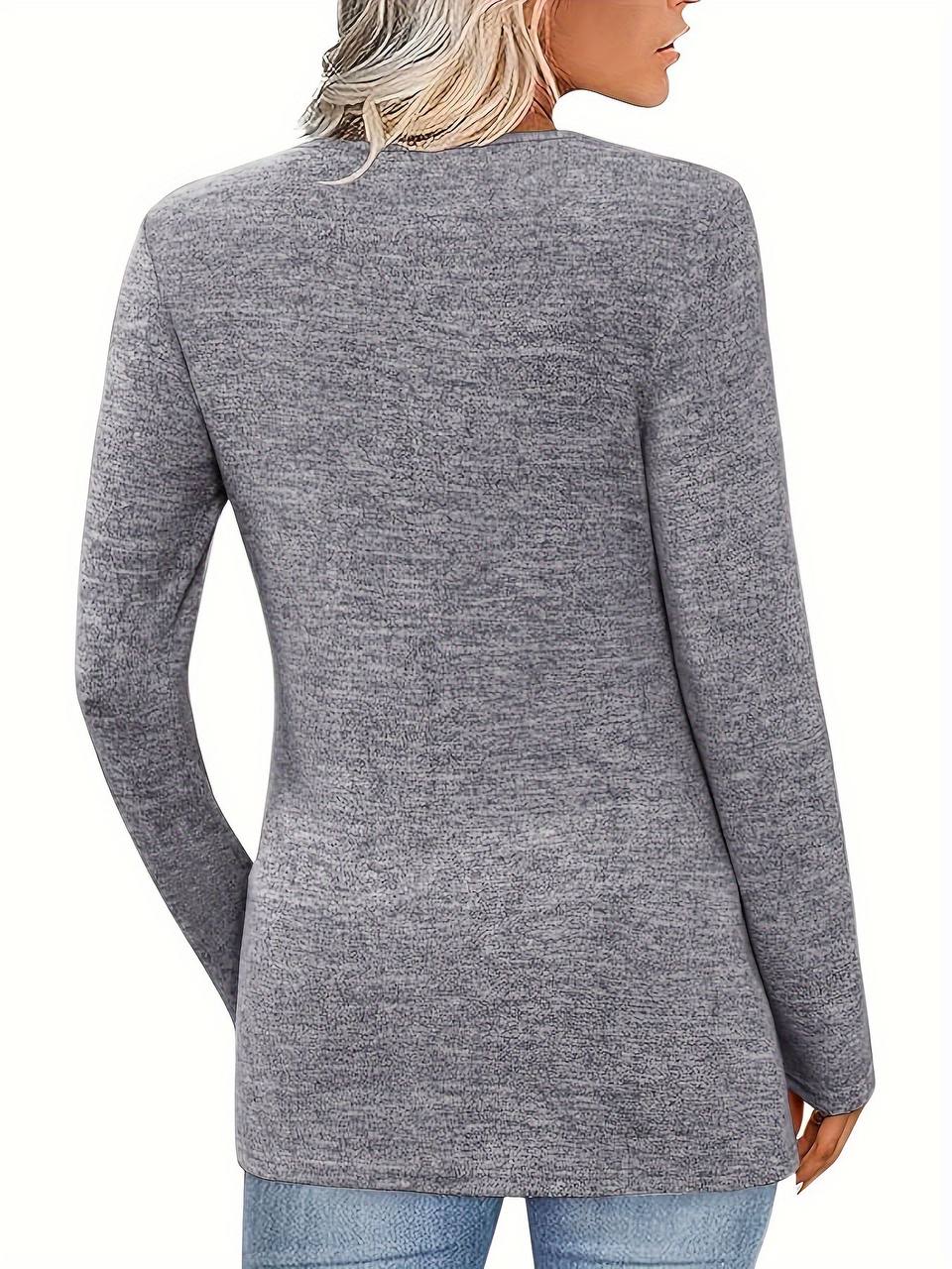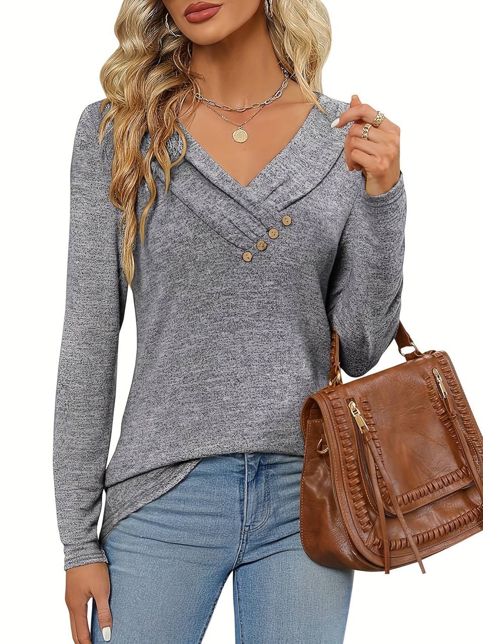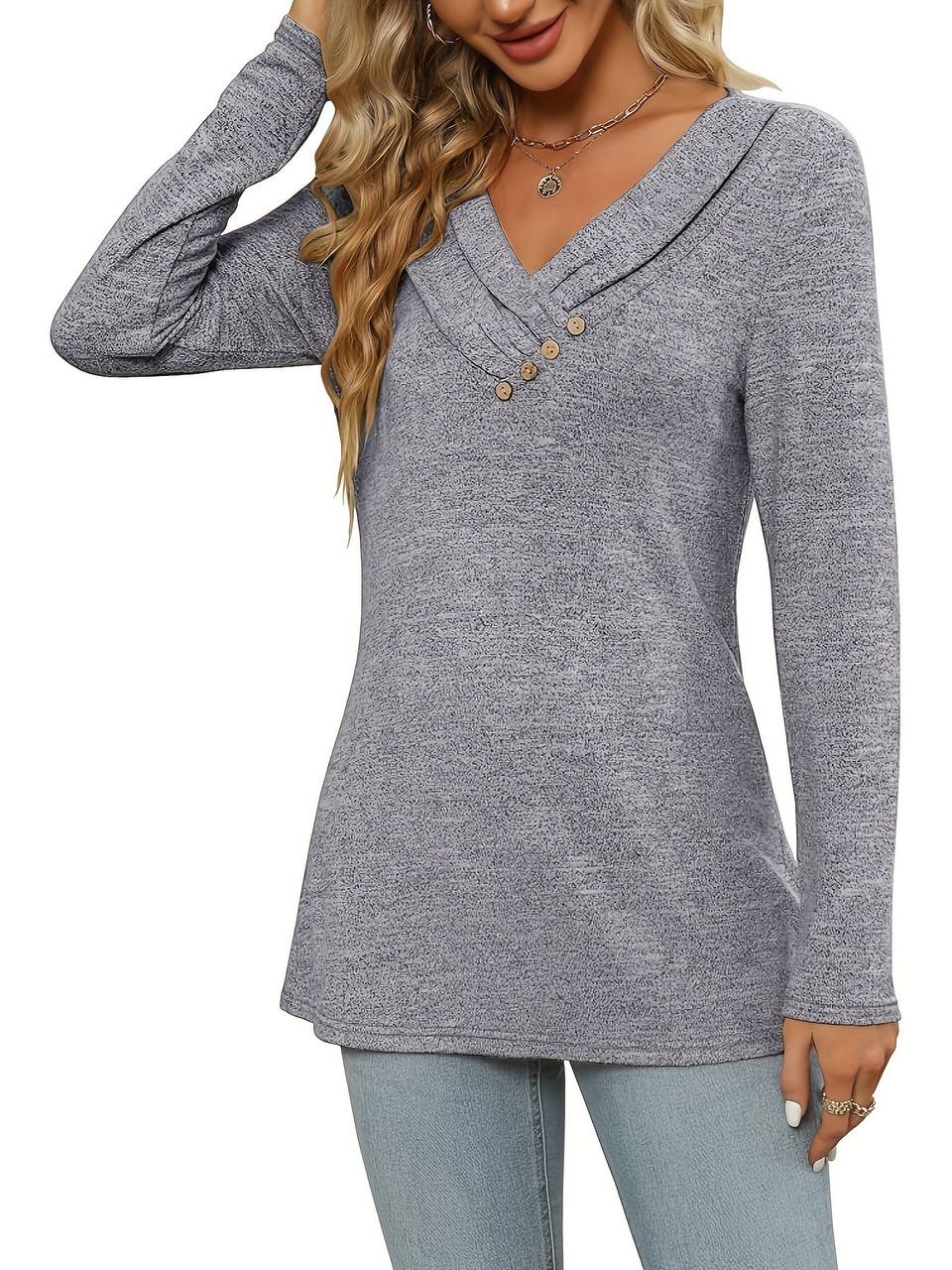 Женская блузка с V-образным вырезом и пуговицами — стильная, с длинным рукавом, удобна для повседневной носки.