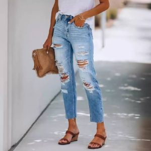 Актуальные джинсы сезона лето 2025 с узким кроем и дерзким рваным дизайном. Облегающий силуэт подчеркивает фигуру, а детали с потертостями и разрывами добавляют образу бунтарский шарм. Сшиты из качественного денима с добавлением эластана для идеальной посадки.